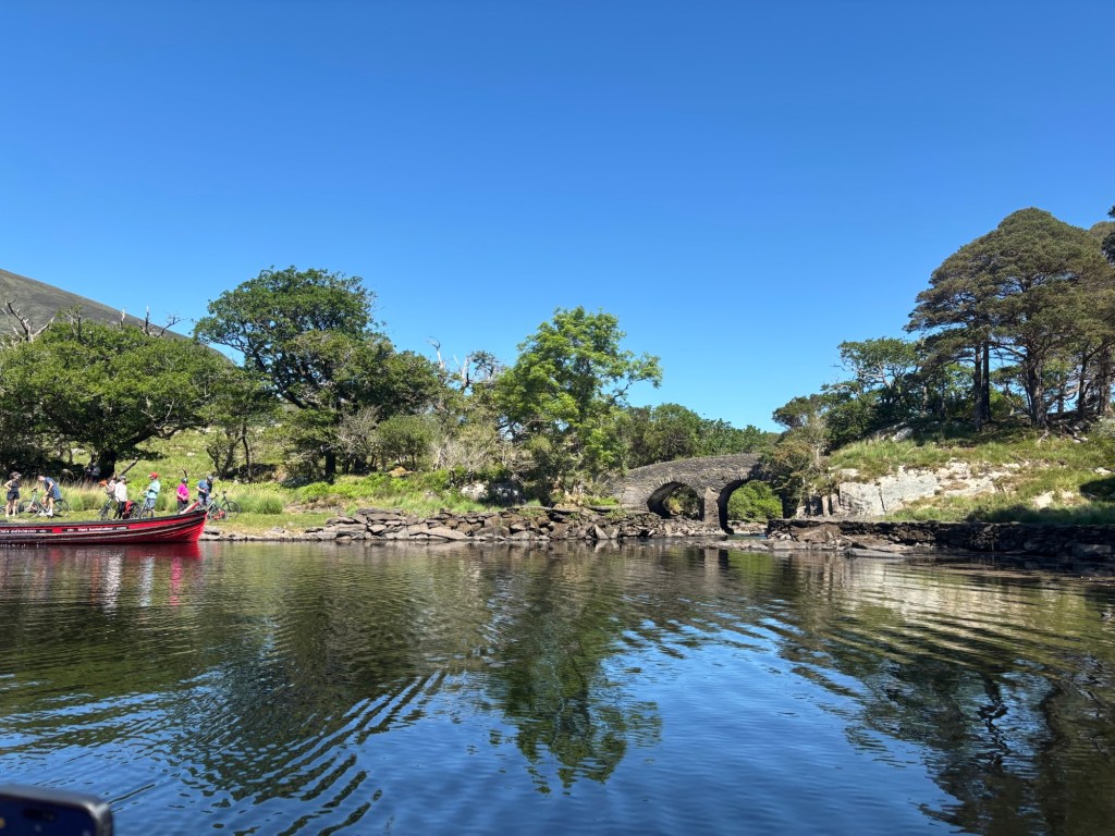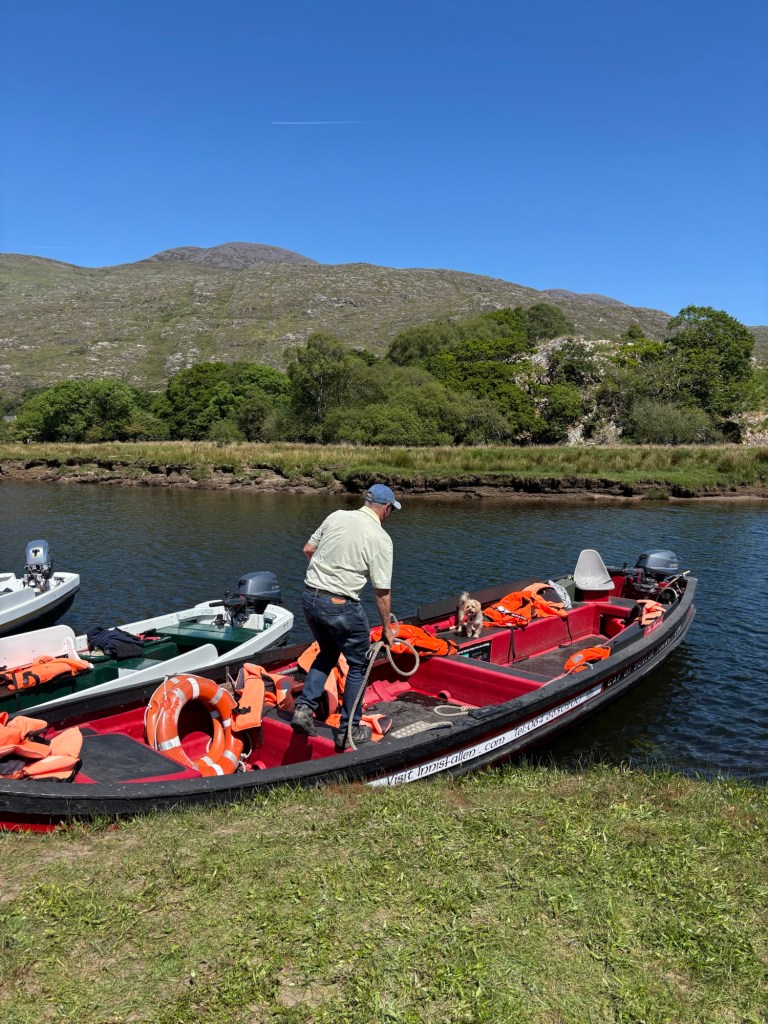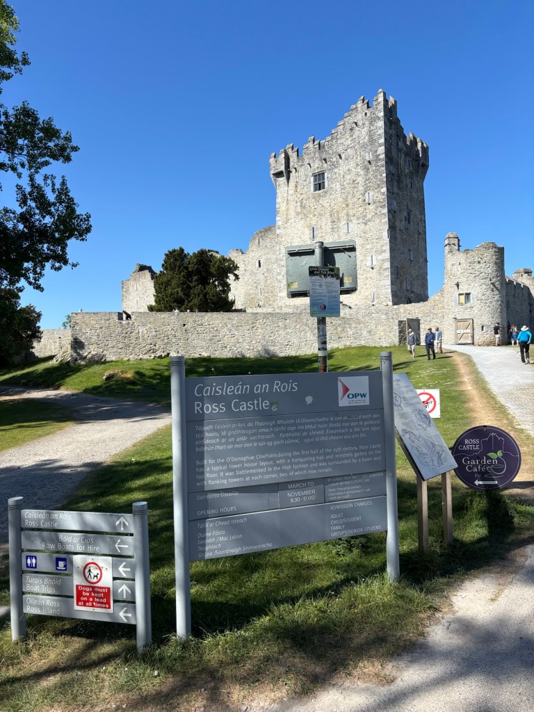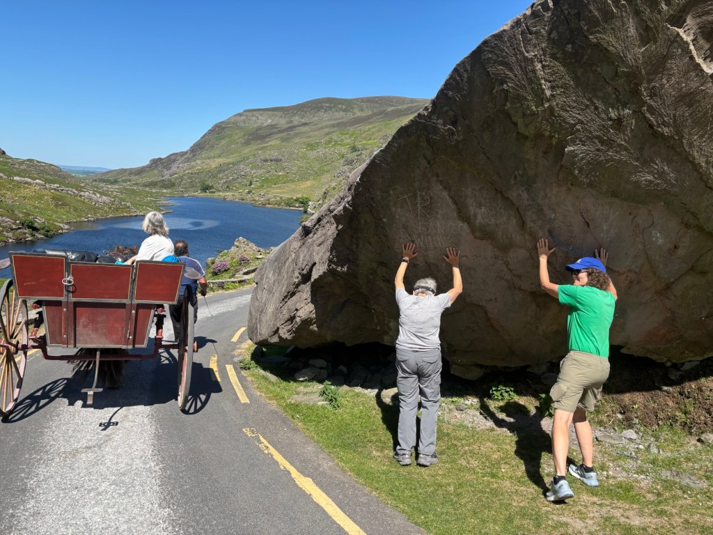 Our “free day” adventure – The Gap of Dunloe in the Killarney National Park. First stop was Ross Castle. Then we boarded a boat with 10 others to travel across 3 lakes in the Killarney National Park. We were joined by the boat operators dog, Bailey (adorable). The water was low in parts of the lakes and a one point we had to disembark and hike about 250 yards to the next lake. At the end of our boat trip across the lakes we had lunch at a small cafe before boarding our horse drawn jaunty to travel on a narrow road across the Dunloe Gap along with tourists in cars and on bicycles. Several times we were asked to walk/hike in order for the horse to take a break. At the end of our jaunty journey we, of course found ourselves in a small pub as our bus driver anxiously awaited us for our return trip to town.