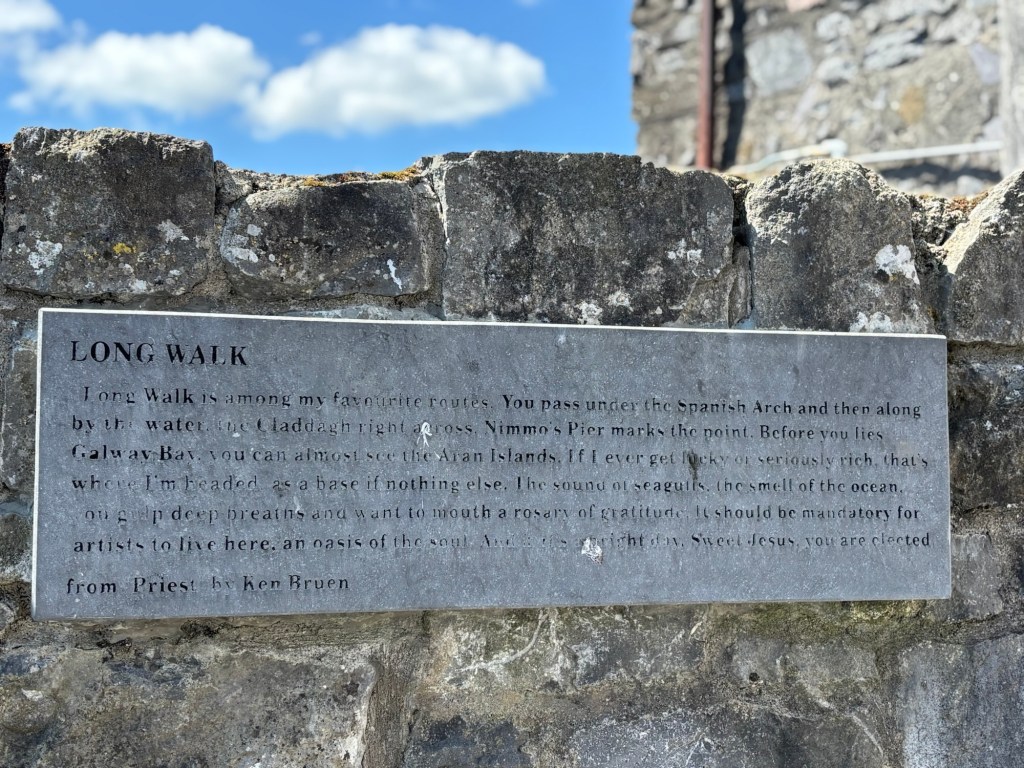 We explored the pedestrian street known as the Latin Quarter; the Galway Museum (with a life size replica of the Galway Hooker); the “Long Walk”; the Spanish Arch; and the Train Tour of the city. We had a good chunk of time to relax in Eyre Park before boarding our bus to head to Clifden Town via the Connemara Region with its patchwork farmland divided by 7000 year old Neolithic walls.
