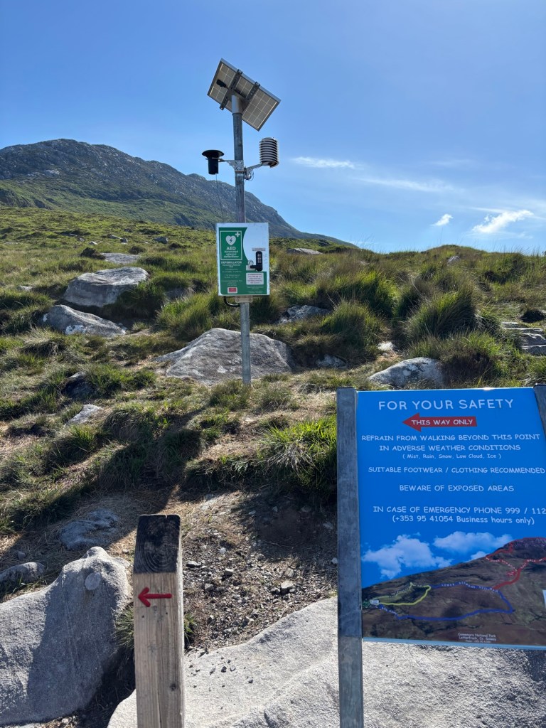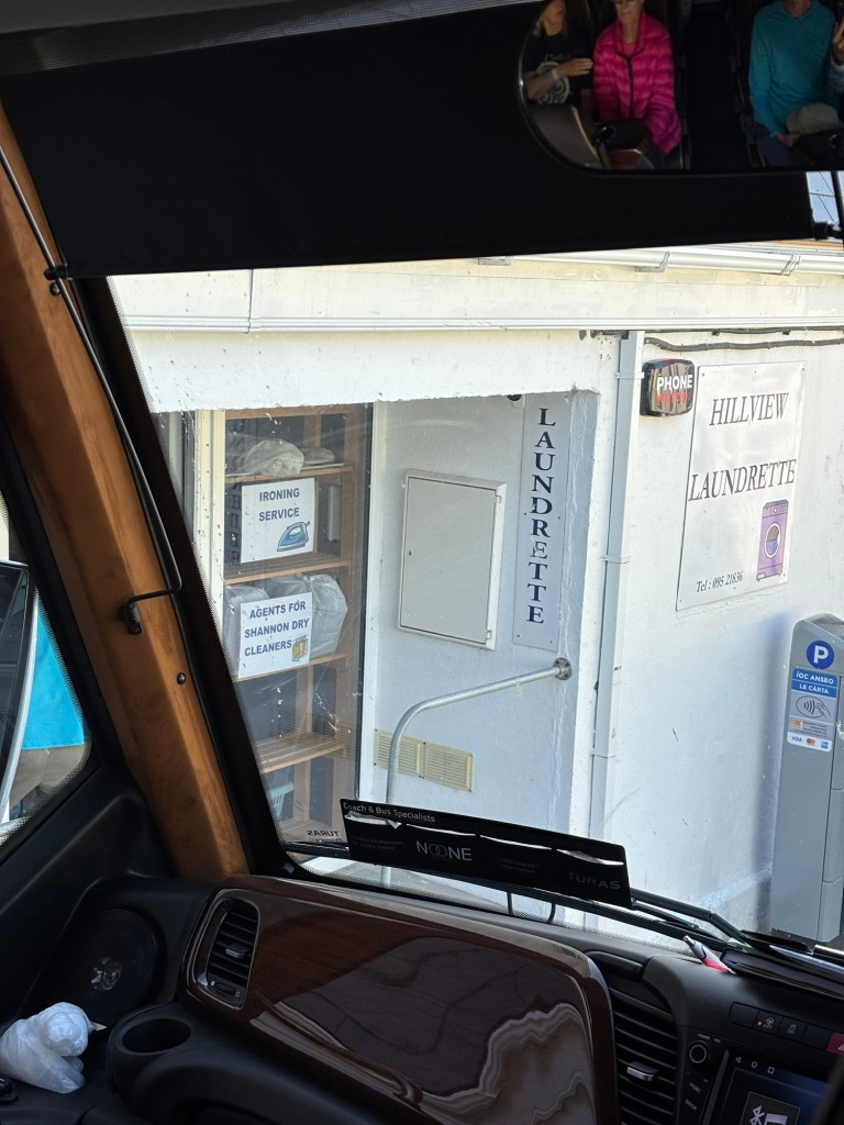 A bit later departure today (9:15 am) as we head to the Connemara Region to hike Diamond Hill (Elevation of 2100+)(One of the 12 peaks in the Manturk Range in the Connemara National Park) and visit Kylemore Castle. First stop on our way out of the town of Clifden was the launderette where we dropped off 16 bags of laundry to be picked up later in the day before they closed at 5:30 pm.