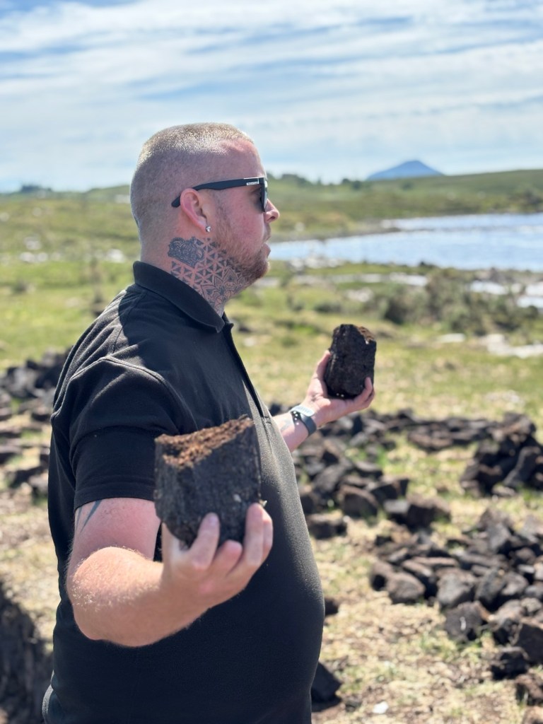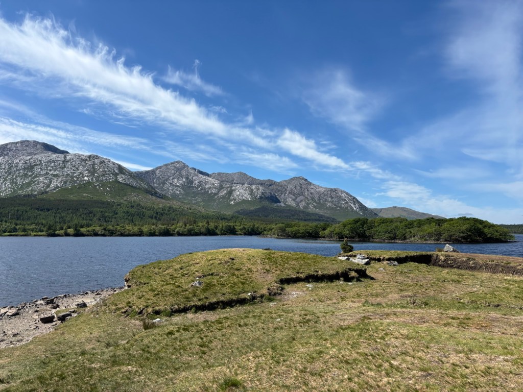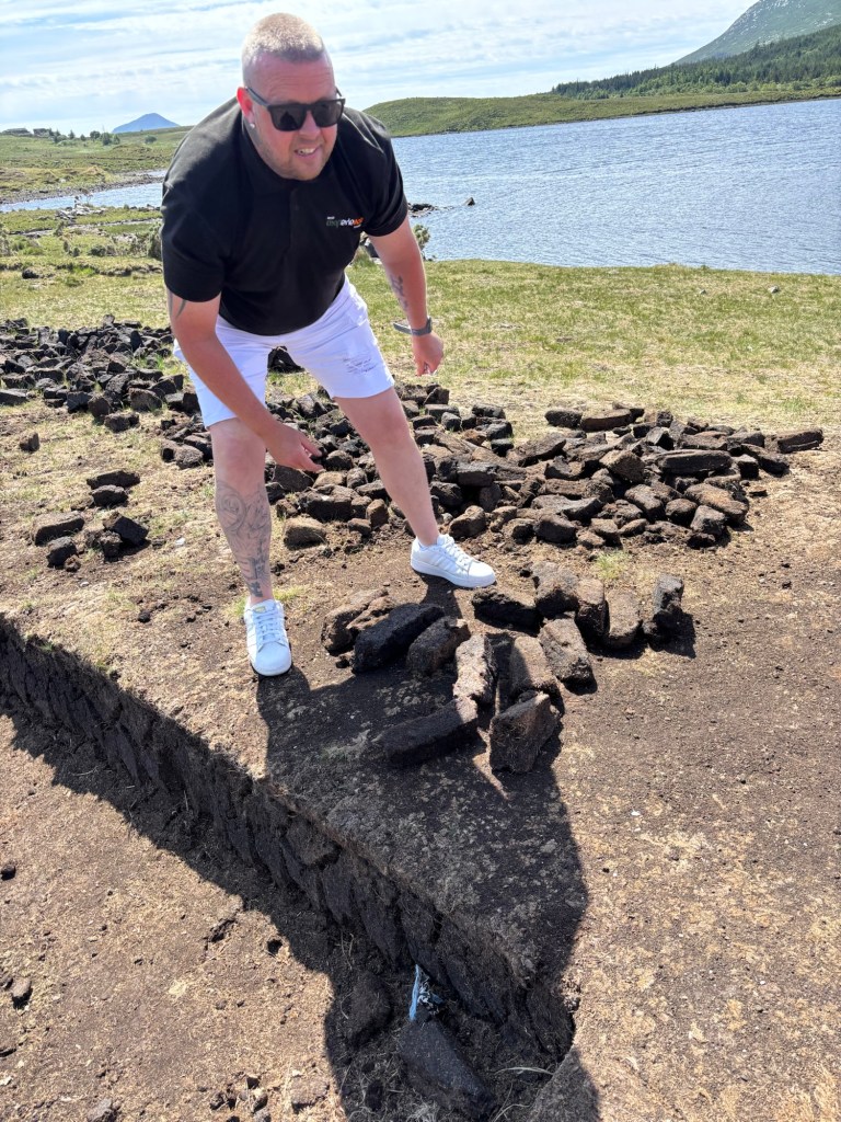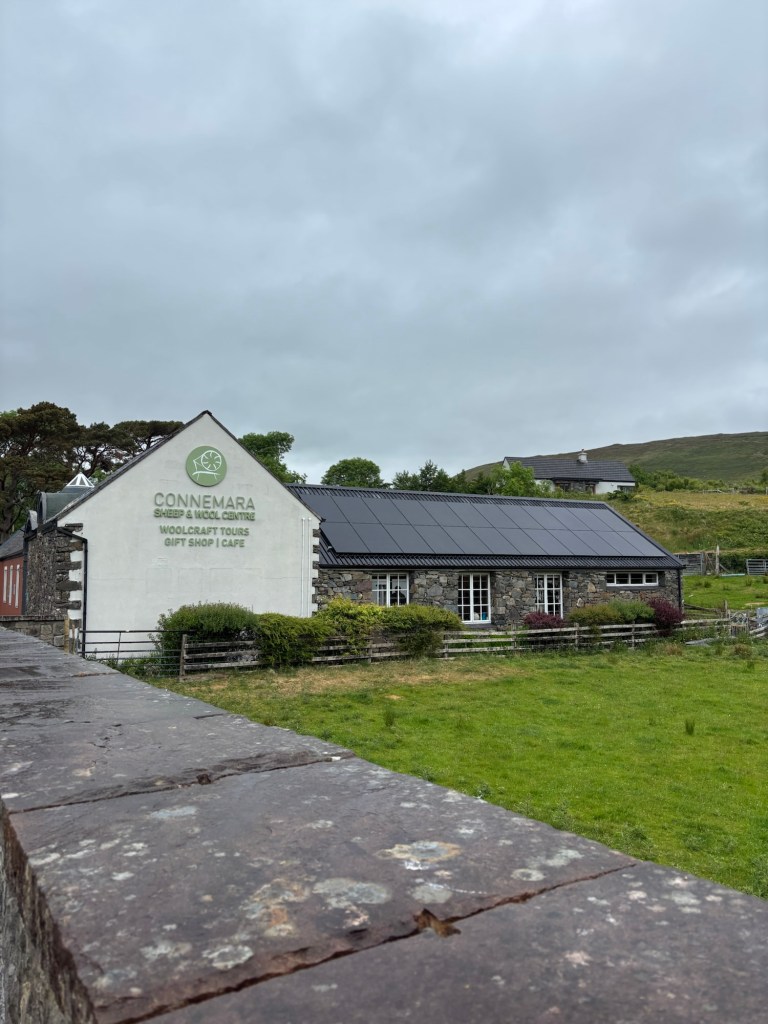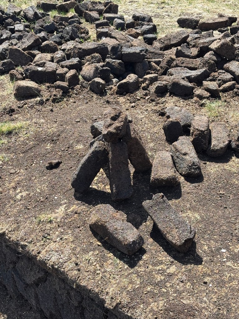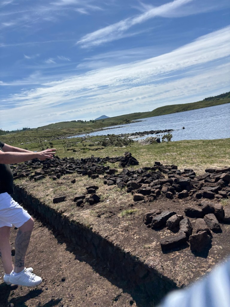 We stopped in the Village of Leenane where many members of our tour group purchased souvenirs. I purchased a bracelet with Connemara Marble. And a few of us walked down the street to experience the unique aroma of burning peat that is not used as much in Ireland as years ago. Only certain homes are permitted to burn the moss peat.