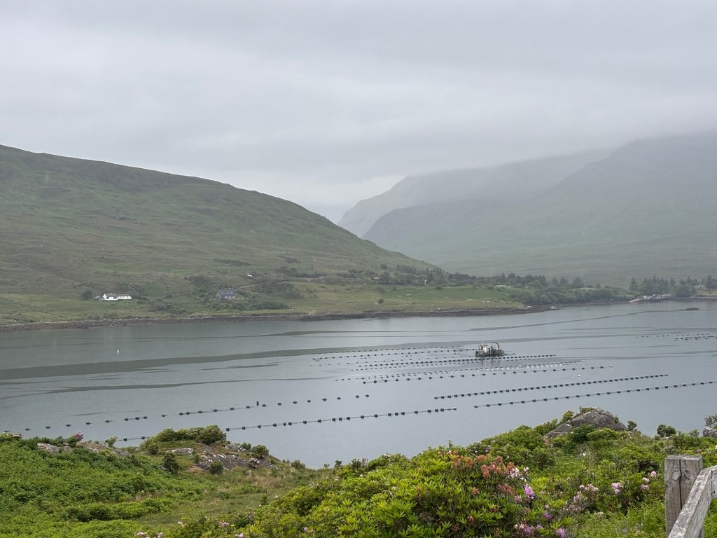Our first stop was to see a view of the Killary Harbour, Ireland’s only fjord. In the fjord was quite the mussel fishing operation for what we were told are the best mussels in all of Ireland.