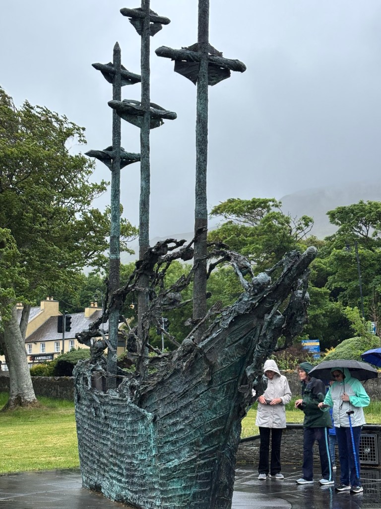 The next part of our journey took us to the breathtaking valley of Doolough and its tragic past… death from famine. The first famine memorial we visited was in memory of those who perished on the coffin ships and the next (Croagh Patrick) was a National Famine Memorial. The Irish famine of the 1800’s is such a sad, tragic story.