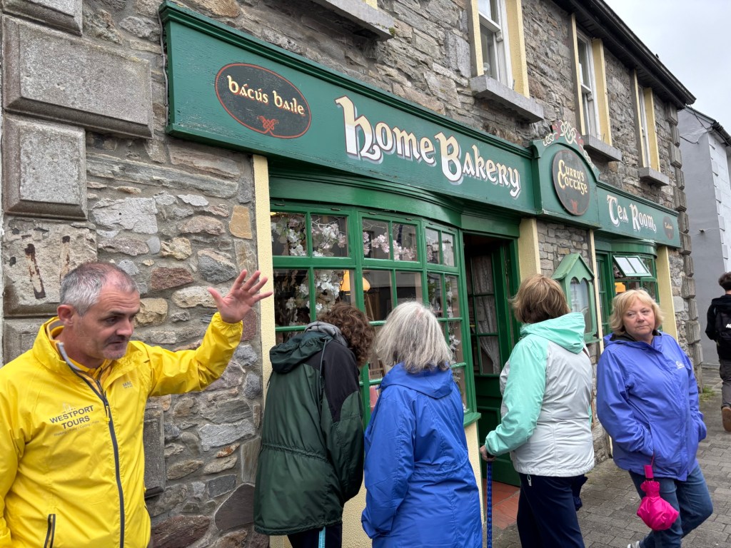 On a lighter note, our next experience was an award winning walking tour of Westport. It even stopped raining for our tour!! The Irish we have met throughout our journey are very proud of their history and their towns. Westport is an award winning “Tidy Town” (the cleanest town in Ireland due to a brigade of local volunteers).