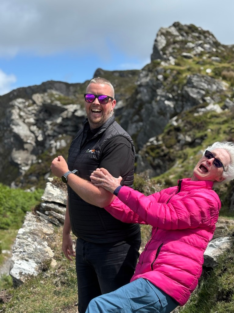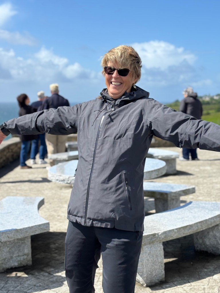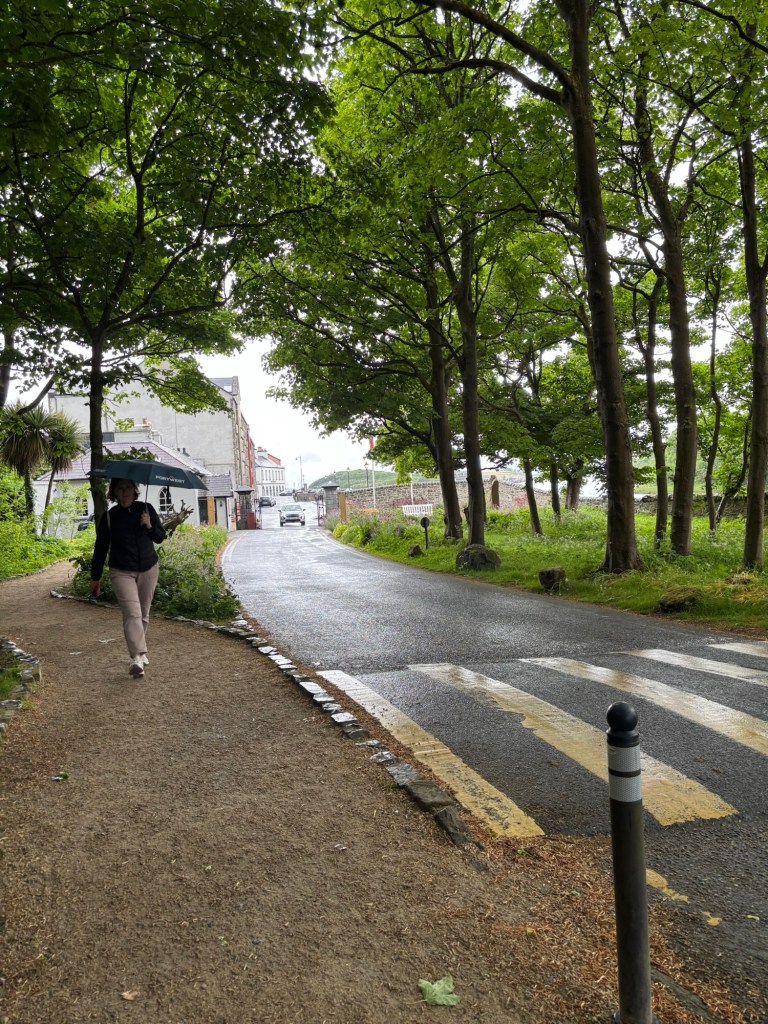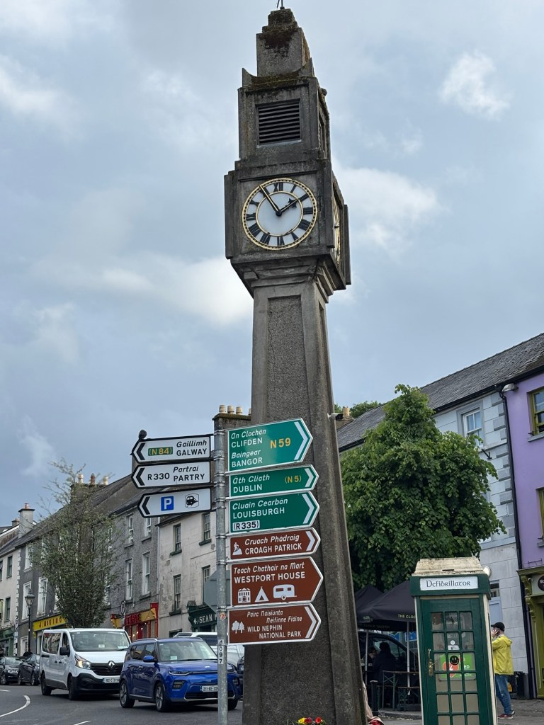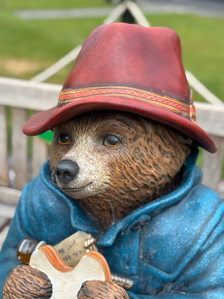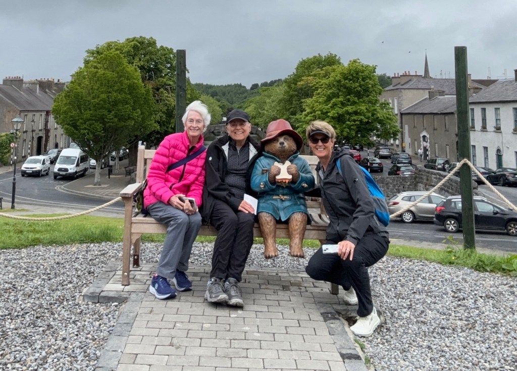As we awoke to rain in Westport we made the decision to not rent e-bikes. We contacted Lee to let him know and then proceeded with alternate plans. Carrie joined us for our day of exploring. First stop was a pharmacy where I could get some decongestant that was compatible with HBP…success. After getting set up with a proper med, we went in search of Paddington and his bench. We found it, but not without a bit of a challenge…thanks to Carrie we found the bench high above us and took our tourist pics:)