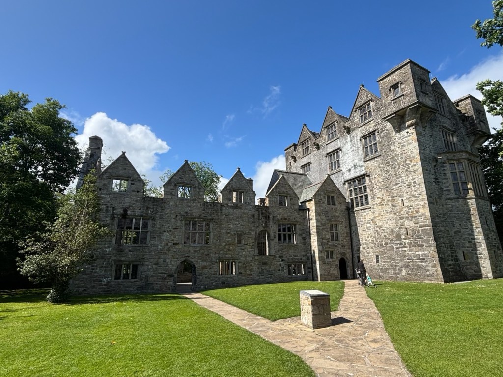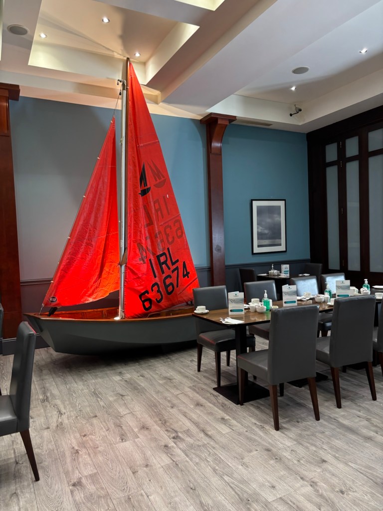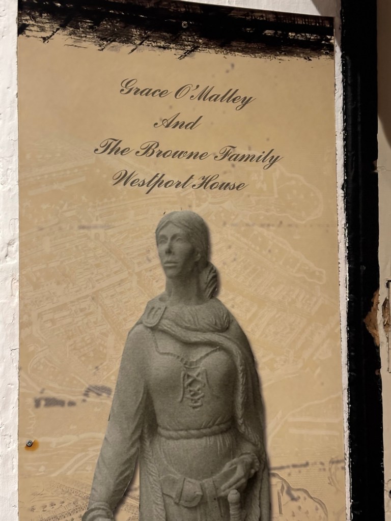 We strolled along the canal, headed up James street toward the clock tower, and made a stop at the Lawton Gallery where I purchased an unframed painting -“Fly Me to the Moon” which is being shipped home. We continued our walk toward the Westport House. Along the way we met an Irish man with a small dog and a very angry American partner from MI. We managed, with some difficulty, to extricate ourselves and continue to the Westport House. Once at the house, we completed a self-guided tour. Connie decided to stay for the guided tour which was to begin in about 20 minutes. Carrie and I took a walk toward the quay and stopped for some coffee when the rain picked up. After enjoying a cuppa, we headed back to the Westport House and on to the Towne centre.
