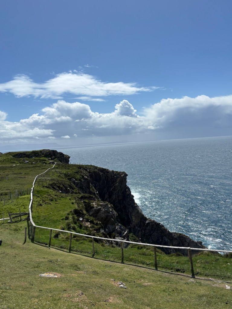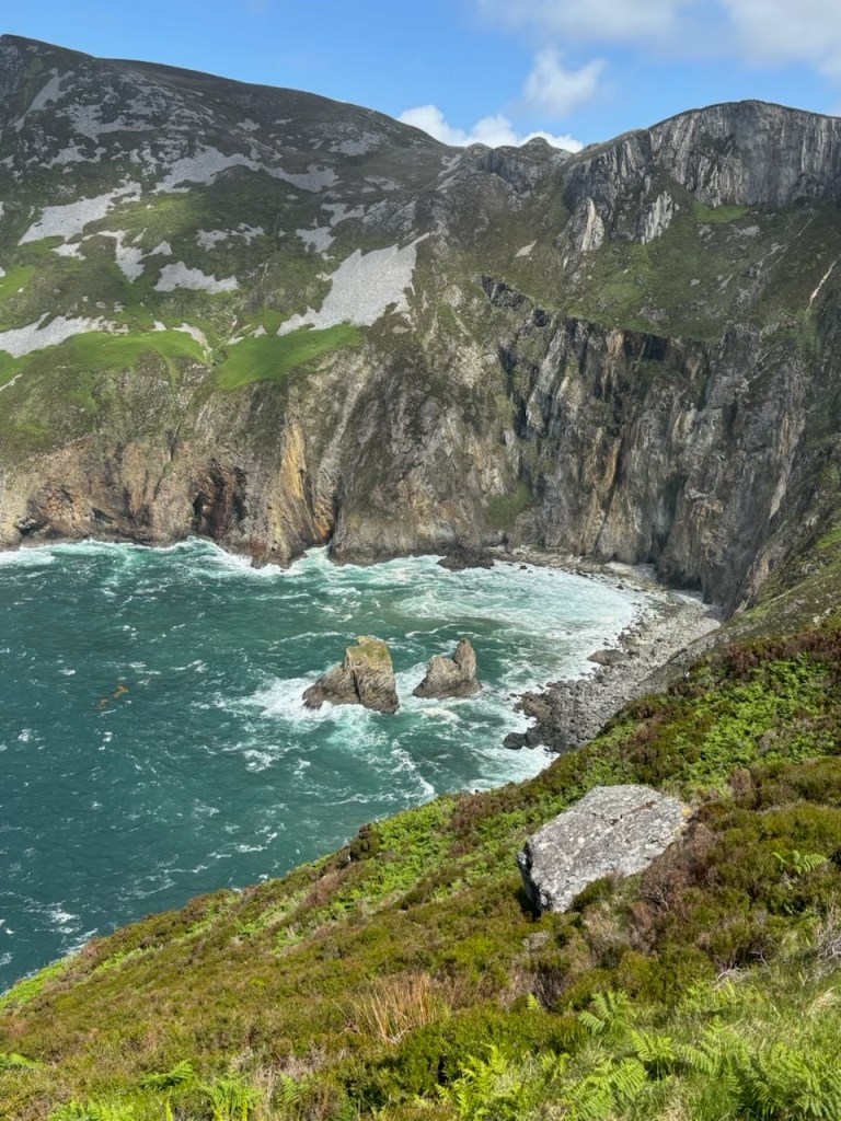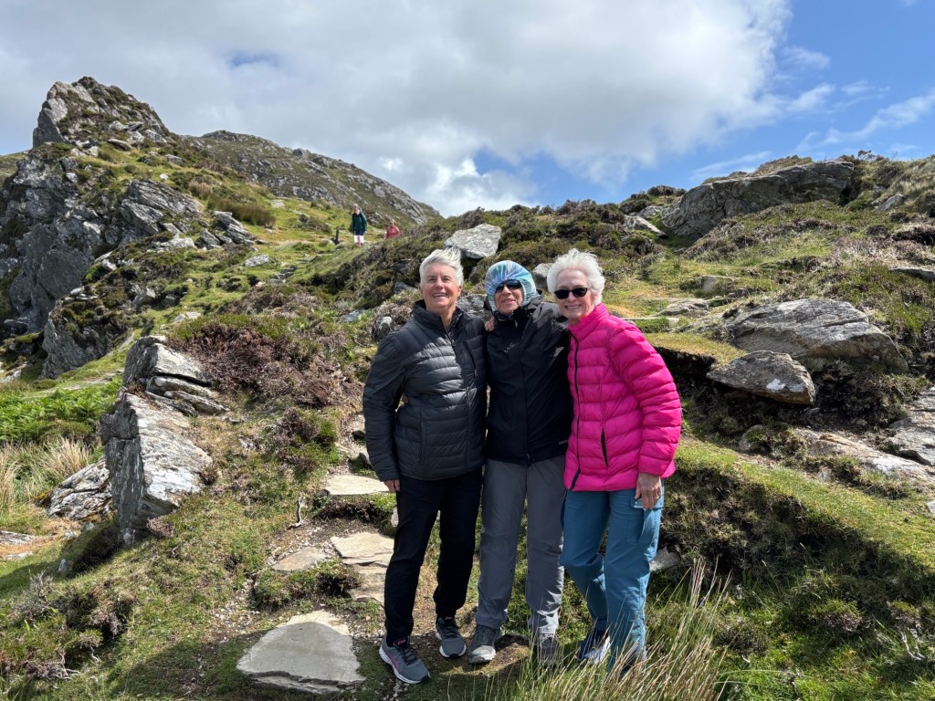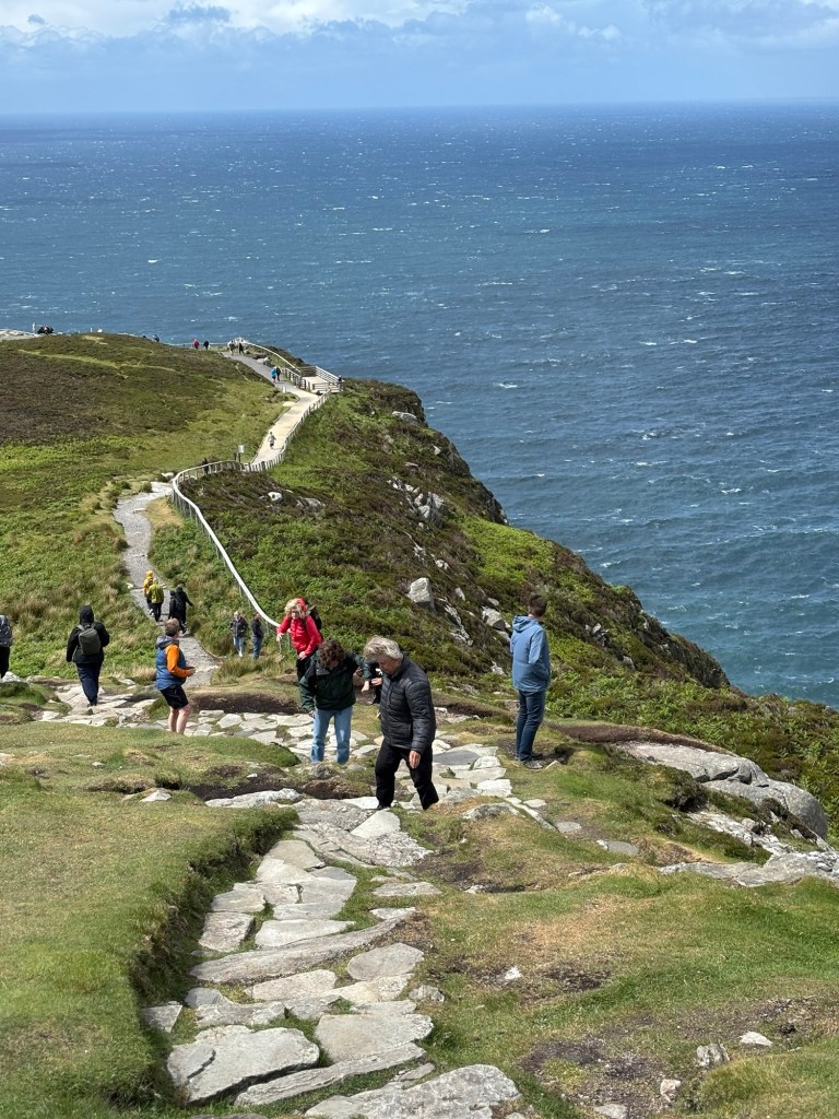 Today we travel to Donegal through the county Sligo via the Glengesh Pass to the Slieve League Cliffs (2000 ft. Cliffs). It was very, very windy at the cliffs! Lee had to assist Carrie up the rocks to the top.